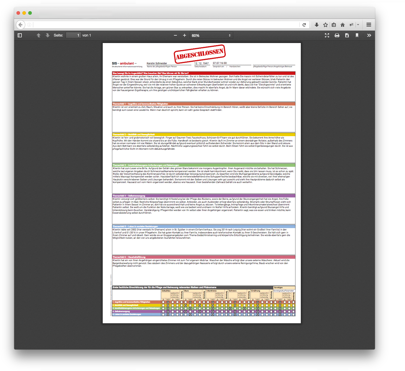 Pflegedokumentation übersichtlich sowie strukturiert ab und